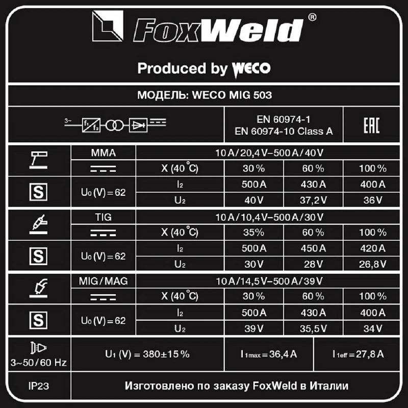 FoxWeld WECO MIG 503 источник питания 8712