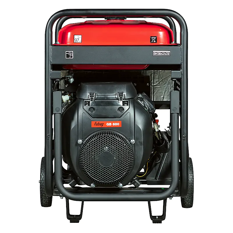 Бензиновый генератор FUBAG оснащен мощным двигателем объемом 679 см³, позволяет подключать как однофазные потребители общей мощностью до 3,3 кВт, так и трехфазные суммарной мощностью до 10 кВт. Для подключения оборудования и приборов предусмотрены розетки 220 В/16 А, 380 В/16 А и силовые клеммы на 380 В для особо мощных потребителей.