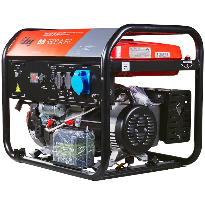 Однофазный бензиновый генератор FUBAG BS 5500 A ES с номинальной мощностью 5,0 кВт отлично подходит для подключения большого количества приборов или работы с мощным оборудованием.