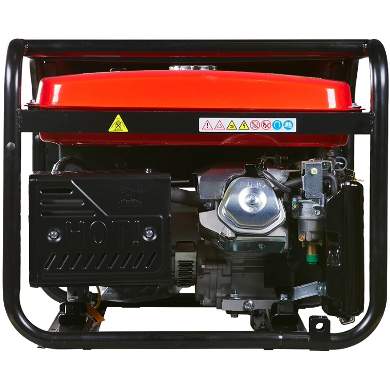 Запуск генератора облегчён электростартером, аккумулятор входит в комплект. При желании можно подключить блок автоматики для автоматического управления электроснабжением (опция). Управление заслонкой карбюратора и топливным краном реализовано в автоматическом режиме с возможностью ручного переключения. На панели управления расположены три пыле- и влагозащищённые розетки: две на 230 В/16 А и одна на 230 В/32 А, каждая с индивидуальной защитой от короткого замыкания и перегрузок. Многофункциональный цифровой дисплей позволяет контролировать выходное напряжение, частоту, а также время работы генератора. Система предупреждения о низком уровне масла и автоматическое отключение при его недостатке обеспечивают безопасность эксплуатации.
