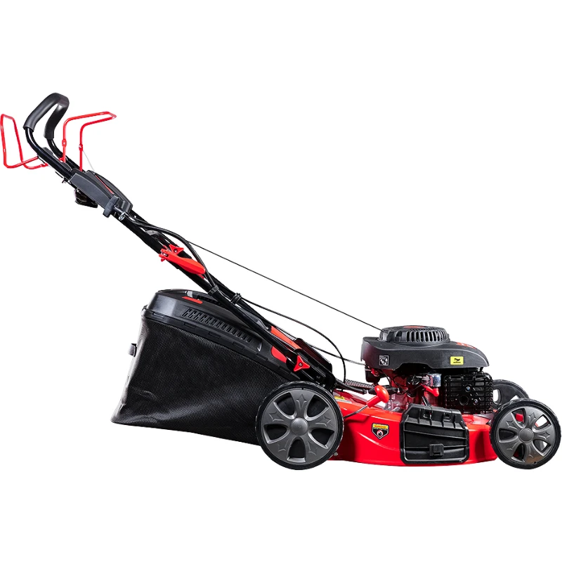 Объём топливного бака — 1,2 литра, а ёмкость комбинированного травосборника достигает 60 литров, обеспечивая продолжительную работу без частых остановок. Привод на нож — прямой, а привод колёс — ременной, это гарантирует надёжное движение со скоростью до 3,4 км/ч. Колёса на подшипниках качения большого диаметра (передние — 200 мм, задние — 245 мм) обеспечивают лёгкость перемещения и не повреждают газон.