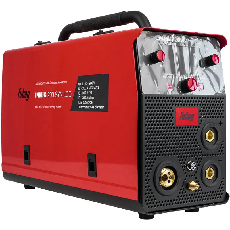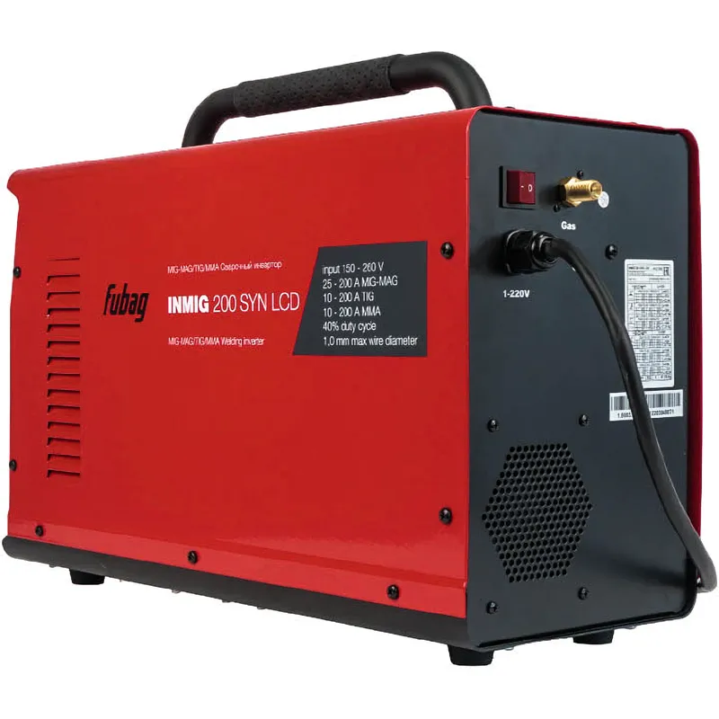 Инверторный сварочный полуавтомат FUBAG INMIG 200 SYN LCD — универсальный аппарат, позволяющий выполнять сварку металлоконструкций из всех видов сплавов. Благодаря прочной нескользящей рукоятке сварочный аппарат удобно доставлять на объект для выполнения монтажных или сварочных работ. Устройство поддерживает наиболее распространенные виды сварки: аргонодуговую с контактным поджигом, покрытыми штучными электродами, с автоматической подачей проволоки в защитной газовой среде. Сварочный ток регулируется в диапазоне от 10 до 200 А.