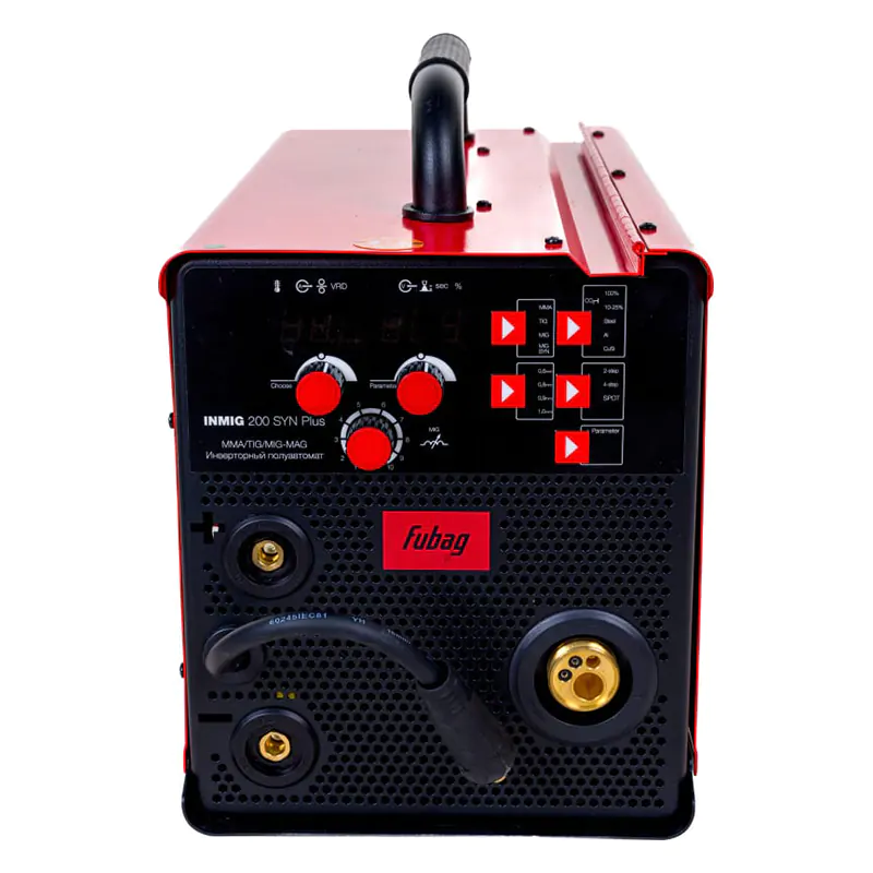 Сварочный полуавтомат FUBAG INMIG 200 SYN PLUS НАКС поддерживает три типа сварки: вручную покрытыми электродами — MMA, дуговым методом TIG и автоматически подаваемой проволокой в среде защитного инертного или активного газа — MIG/MAG. Устройство работает от однофазной электросети с напряжением 220 В. Аппаратом удобно пользоваться как новичкам, так и профессионалам благодаря простой настройке в ручном и синергетическом режимах. Продолжительность включения составляет 40 %.