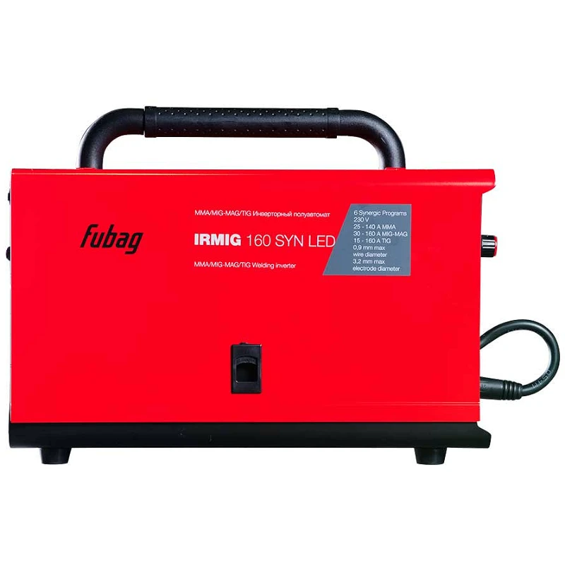 Сварочный полуавтомат FUBAG IRMIG 160 SYN LED — это мощный и универсальный инверторный аппарат, оснащённый ярким и информативным LED-дисплеем. Устройство поддерживает несколько режимов сварки: MMA, MIG/MAG, TIG Lift, а также FLUX, и предлагает выбор из 11 предустановленных синергетических программ для упрощения настройки.