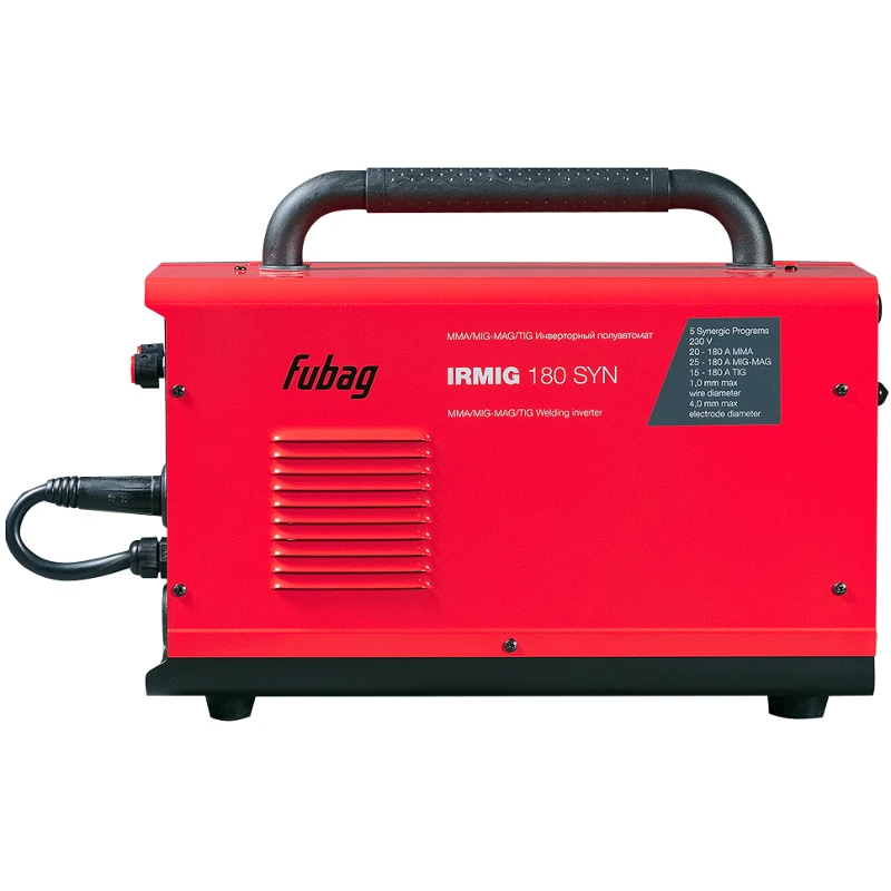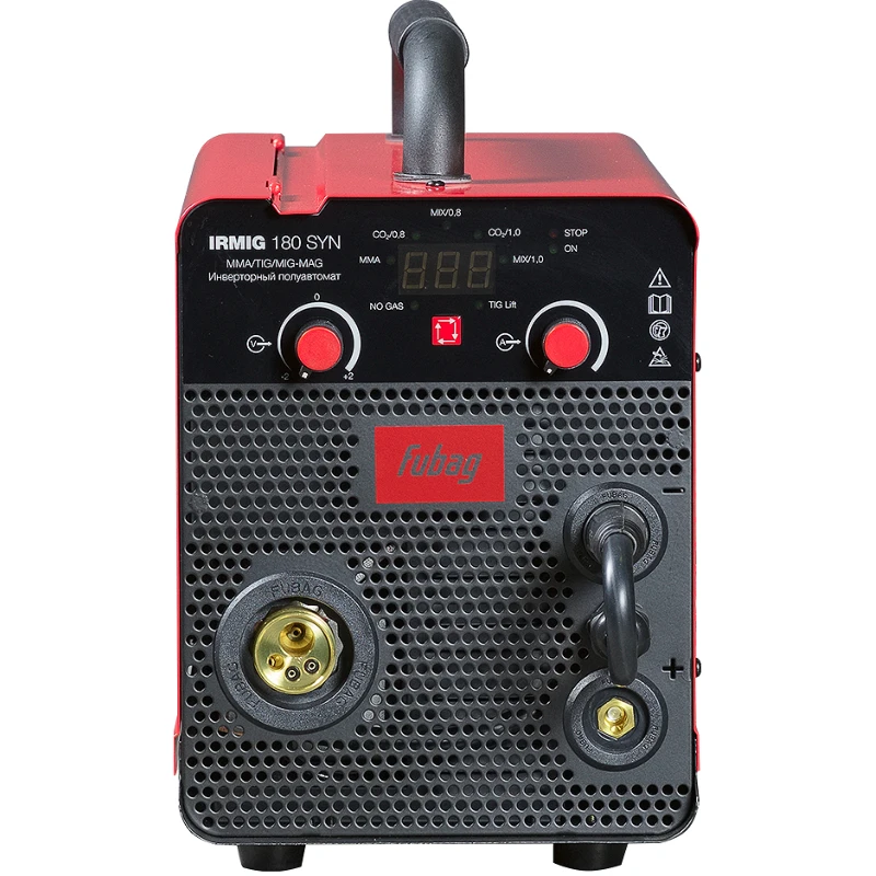 Евроразъем позволяет быстро подключить или заменить горелку. Цифровой дисплей показывает реальные параметры в процессе сварки. Металлический подающий механизм не проскальзывает даже при работе с жесткой проволокой. Комплектация сварочного аппарата FUBAG IRMIG 180 SYN, включающая все необходимое для работы, экономит время и деньги. После распаковки аппарат готов к работе в течение 5 минут. Благодаря прочному корпусу, удобной ручке и защите от перегрева модель одинаково надежна как при стационарном использовании в гараже, так и на выездных работах.