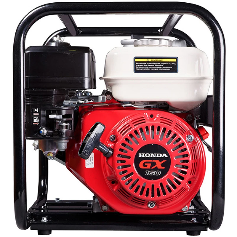 Диаметр всасывающего и нагнетательного отверстий составляет 80 мм, что позволяет работать с частицами размером до 4 мм. Мотопомпа весит 24,3 кг, отличается компактными размерами — 490×375×435 мм, и способна непрерывно работать до 2,6 часов на одной заправке.