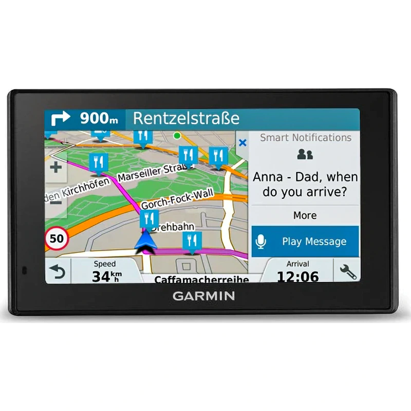 Также присутствует голосовое управление и настройка с помощью смартфона или планшета. Достаточно установить приложение Smartphone Link и подключиться к навигатору Garmin DriveSmart 51 RUS LMT через Bluetooth. В программе можно получить предупреждения о плотном траффике, узнать о свободных парковочных местах и их стоимости и т.д.