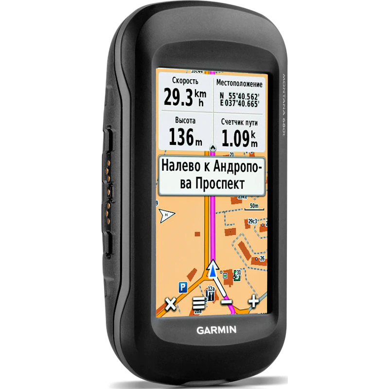 Помимо навигационного модуля GPS/ГЛОНАСС, в Garmin Montana 680t встроен 3-осевой электронный компас. Функция позволит сориентироваться на местности при плохом сигнале со спутников или большом числе помех, мешающих точному установлению координат. Также предусмотрен альтиметр, отслеживающий текущее атмосферное давление для вычисления высоты над уровнем моря.