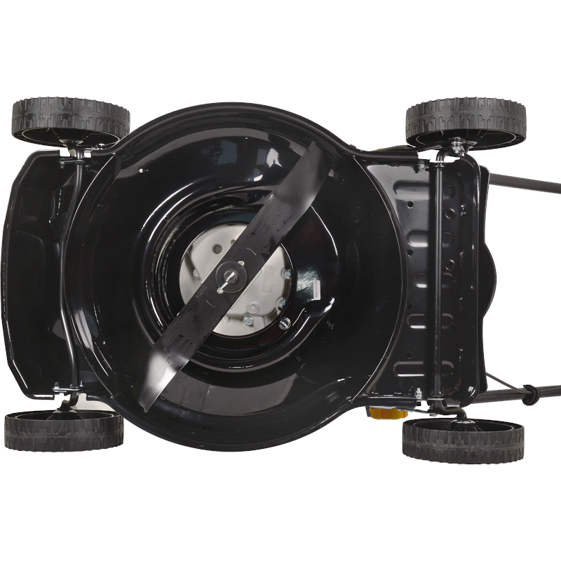 Бензиновая газонокосилка легко заводится благодаря системе быстрого старта. Для остановки двигателя достаточно просто отпустить прижимной рычаг. Вращение ножа мгновенно остановится. Рычаг для регулировки высоты среза травы, расположенный около заднего колеса, имеет пять фиксированных положений. Дека косилки поднимается над землей на нужный уровень одним движением. Большая ширина скашивания позволяет быстрее обработать участок за меньшее число проходов.
