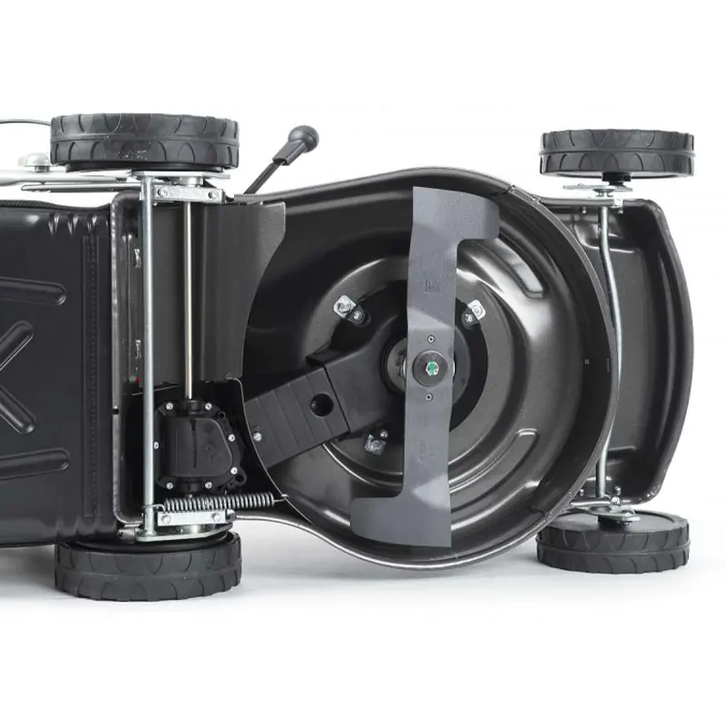 Прочный металлический корпус надежно защищает внутренние узлы от механических повреждений. Косилка не боится случайных столкновений с препятствиями на участке.
