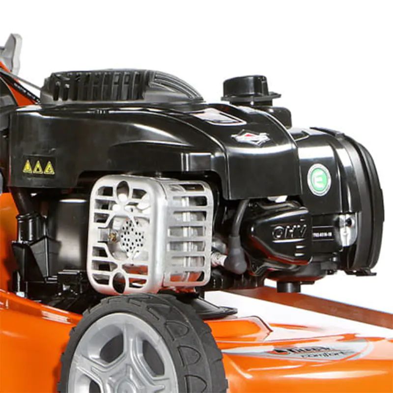 - Двигатель Briggs&Stratton 550 E SERIES™(США). Специально разработан для использования на газонокосилках хобби-класса. Характеризуется лучшим в своем классе соотношением мощность-вес, легким запуском и системой ReadyStart, сниженным уровнем вибрации и шума.