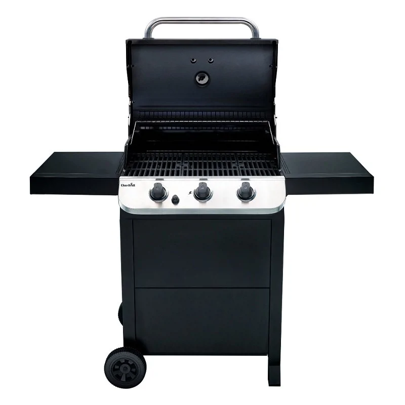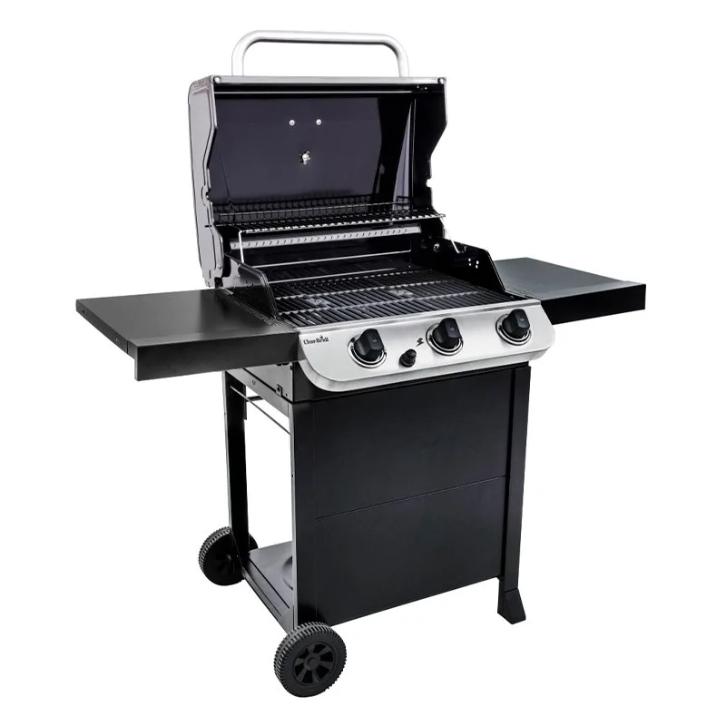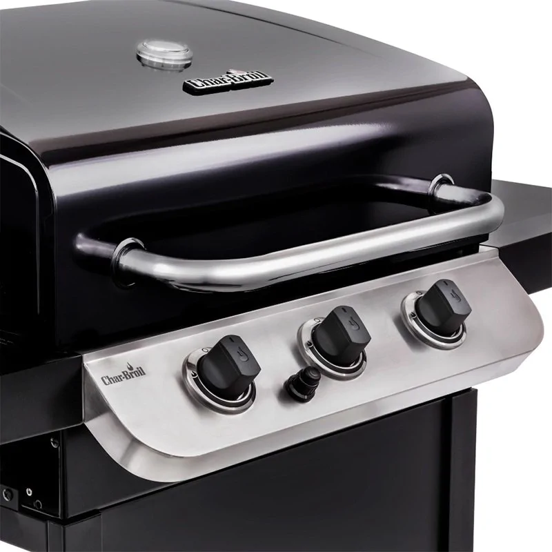 Газовый гриль Char-Broil Performance 3B предоставляет возможность приготовить мясо или овощи как на мангале, но без необходимости разжигания углей. Устройство работает от газового баллона с пропаном или бутаном. Три конфорки имеют общую тепловую мощность 10,5 кВт. Пьезорозжиг питается от щелочной батарейки 1,5 В. Крышка котла оборудована встроенным термометром. С обеих сторон гриля предусмотрены откидные столики для расширения рабочего кухонного пространства.