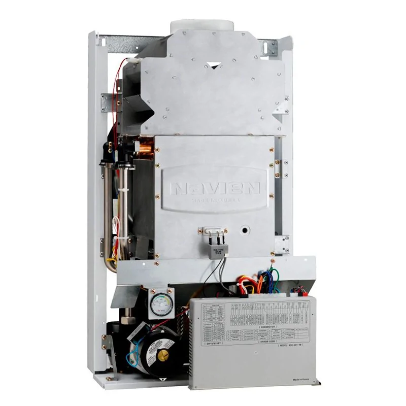 Газовый настенный котел Navien Ace-16A оснащен теплообменником, выполненным из нержавеющей стали. Теплообменник устойчив к коррозии, что обеспечивает долгий срок службы котла. Предусмотрен манометр для контроля давления воды в котле и предохранительный клапан на 3 бар. Для удобства эксплуатации агрегат оснащен режимом предварительного нагрева воды. Данный котел применяется для отопления и подготовки горячей воды. Аппарат стабильно работает при низком давлении газа (4 мбар) и воды (0.1 бар).