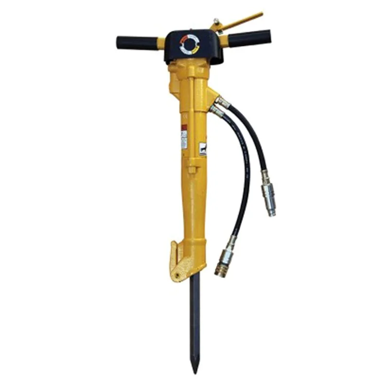 Гидравлический отбойный молоток Caiman BH161V в комплекте с пикой - ручной инструмент для разрушения асфальта, бетона или работ по трамбовке (при использовании соответствующих наконечников, которые приобретаются отдельно). Молот работает от гидравлической станции Caiman, но его можно запитать от другого источника, например, гидросистемы мини-экскаватора.