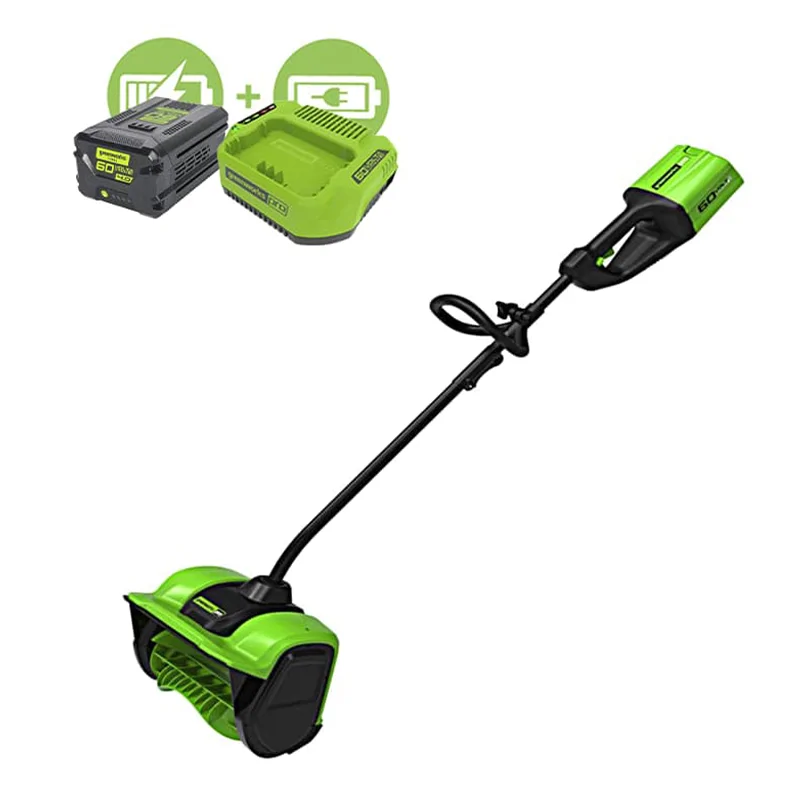 Аккумуляторный снегоуборщик Greenworks GD60SS с шириной захвата в 30 см отлично подходит для расчистки придомовой территории, дорожки около дома и парковочного места для автомобиля. Поставляется в комплекте с зарядным устройством и АКБ емкостью 4 А/ч, поэтому вам не придется ничего докупать.