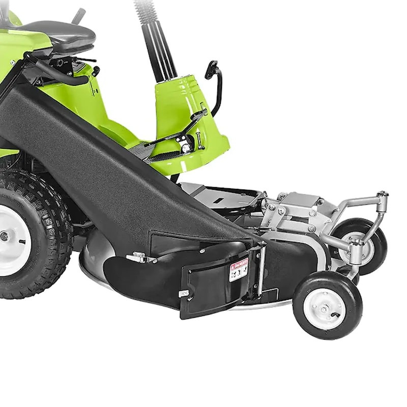 Удобное расположение органов управления. Все рычаги и клавиши управления расположены возле кресла оператора. Опустошение травосборника осуществляется с сиденья водителя при помощи рычага. Радиус поворота колес составляет 30 см и позволяет производить разворот на узких участках.