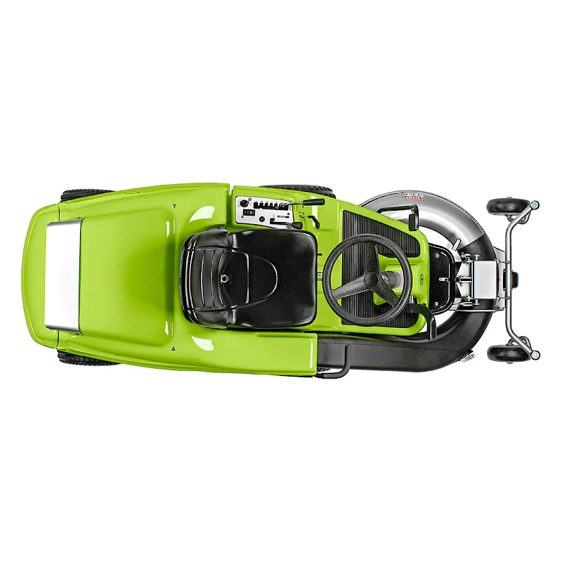 Удобное расположение органов управления. Все рычаги и клавиши управления расположены возле кресла оператора. Опустошение травосборника осуществляется с сиденья водителя при помощи рычага. Радиус поворота колес составляет 30 см и позволяет производить разворот на узких участках.