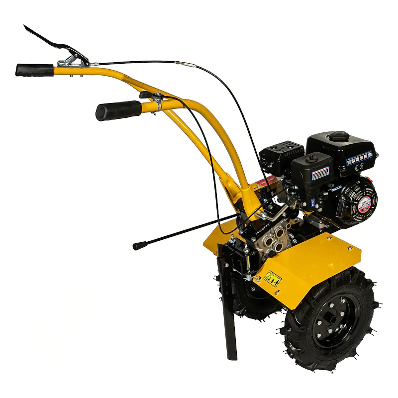 Мотоблок Habert HM-21 оснащен колесными покрышками с высокими рельефными протекторами, которые отличаются хорошим сцеплением с грунтом и маневренностью. Металлические крылья служат для защиты двигателя и работающего оператора от вращающихся частей мотоблока, а также от летящих во время работы комьев земли. Продолжительная работа без дозаправки гарантирована благодаря вместительному топливному баку. Используемый в качестве трансмиссии шестеренчатый редуктор в алюминиевом корпусе с масляной ванной обеспечивает долгий срок службы и высокую надежность мотоблока.