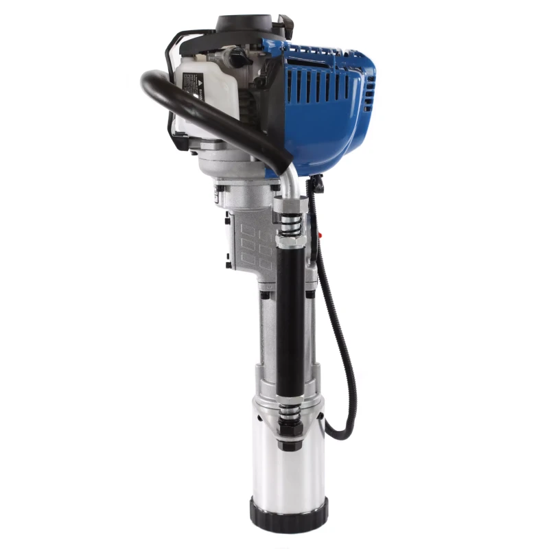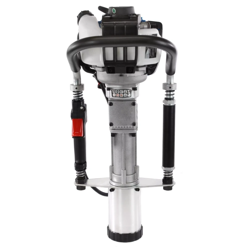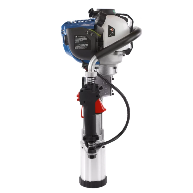Рукоятка акселератора обеспечивает регулировку оборотов двигателя и силы удара, что позволяет адаптировать работу под разные задачи. Благодаря продуманной конструкции, копер минимизирует вибрации, передающиеся на руки оператора, обеспечивая комфортную и безопасную эксплуатацию.