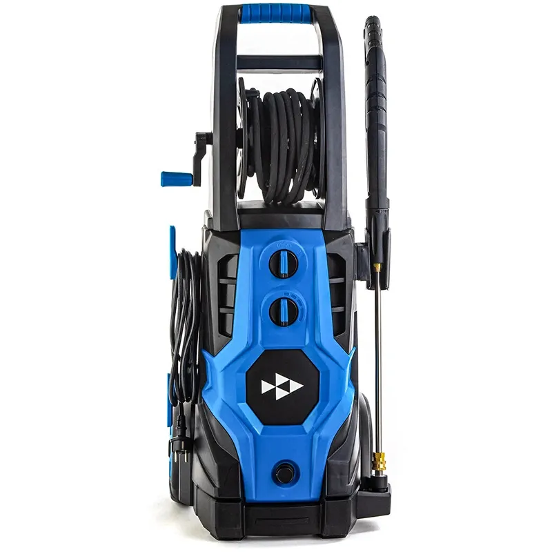 Электрическая мойка высокого давления подходит для использования в быту и на автомойках. Устройство генерирует мощную струю с давлением до 230 бар, которая удаляет даже стойкие загрязнения. В зависимости от типа очищаемой поверхности напор можно регулировать, во избежание повреждения покрытия. Встроенный пеногенератор ускоряет процесс и улучшает результат уборки.