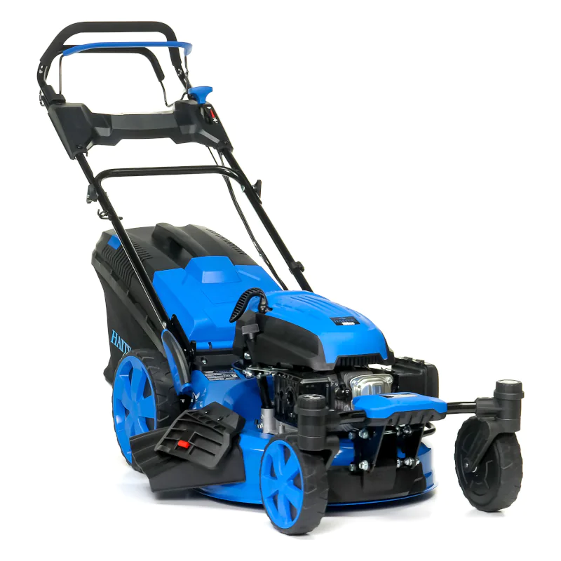 Бензиновая газонокосилка HAITEC с двигателем мощностью 6,5 л.с. рассчитана на уход за участками площадью до 1700 м². Длина ножа 51 см позволяет скашивать широкую полосу за один проход, что ускоряет обработку территории. Особенность модели – поворотные передние колеса, за счет чего газонокосилку можно развернуть на одном месте, а также проходить узкие участки, косить траву на газонах сложной формы. При необходимости движения по ровной линии колеса можно зафиксировать в прямом положении.