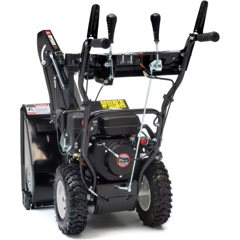 Бензиновый снегоуборщик имеет светодиодную фару, с которой удобно работать ранним утром или поздним вечером. Для комфорта в мороз предусмотрен подогрев рукояток. Большие колеса тракторного типа обеспечивают плавное передвижение по неровным поверхностям и гарантируют отличное сцепление с рыхлым снегом и со льдом.