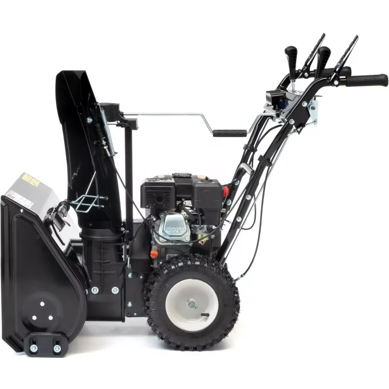 Большой ковш позволяет эффективно справляться с сугробами даже после обильного снегопада. Двухступенчатая система шнеков и ковш сделаны из металла, поэтому справляются не только с легким свежевыпавшим, но и с обледеневшим снегом.