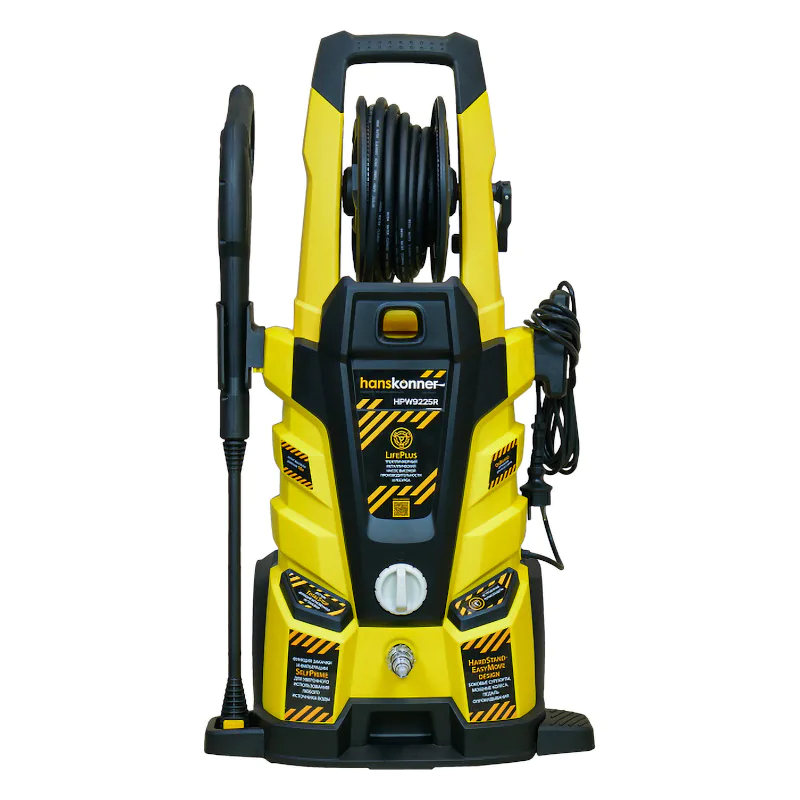 В верхней части аппарата высокого давления Hanskonner HPW9225R расположена катушка, на которую наматывается шланг для компактного хранения. Это не только удобно, но и помогает избежать случайного повреждения шланга. А для простого крепления насадок предусмотрена быстросъемная система QuickConnect.