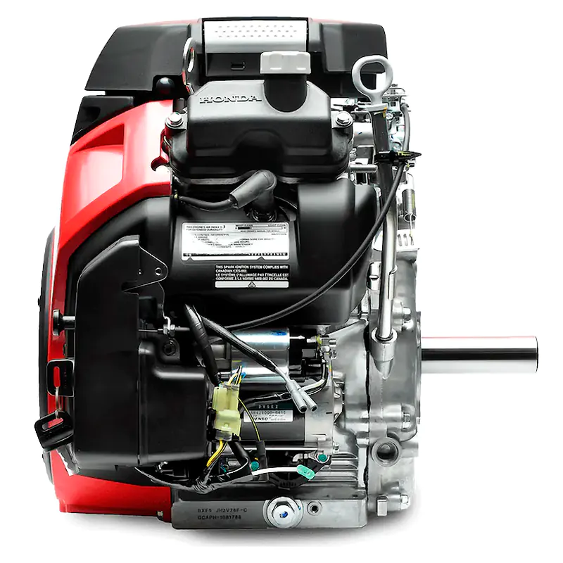 Двигатель бензиновый Honda GX690RH-BXF5 разработан специально для использования совместно с мототехникой. Благодаря специальной конструкции имеет низкий уровень шума и вредных выбросов в атмосферу. Кованый коленчатый вал изготовлен с высокой точностью, что обеспечивает отсутствие вибраций. Оснащен панелью управления, топливным насосом, датчиком уровня масла. Тип двигателя: бензиновый, 4-хтактный, двухцилиндровый, V-образное расположение цилиндров, с воздушным охлаждением и системой газораспределения OHV, без бака и глушителя.