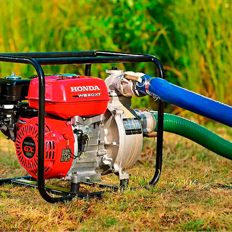 Бензиновая мотопомпа HONDA WB20XT4DRX имеет высокую производительность 620 л/мин при сравнительно небольшом весе около 21 кг. Насос рассчитан на перекачку слабозагрязненной воды с включением примесей размером до 6 мм. Устройство поможет при обслуживании плавательных бассейнов, перекачке жидкостей в сельском хозяйстве. Мотопомпа оснащена 4-тактным надежным и малошумным двигателем Honda GX126с ручным стартером. Максимальный напор составляет 32 м, глубина всасывания — до 7,5 м.