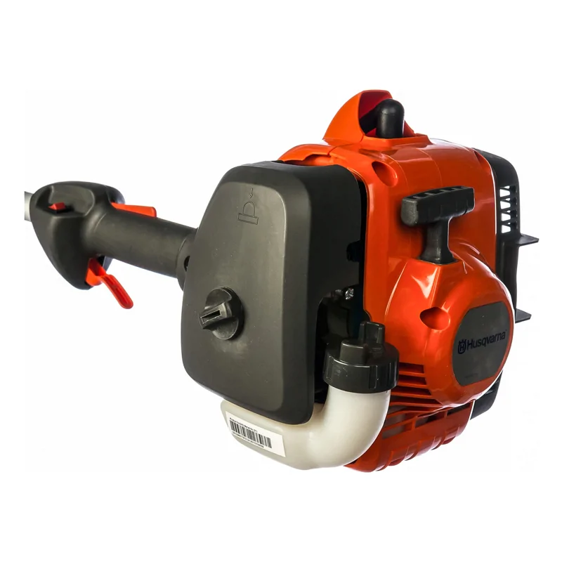 Бензокоса Husqvarna 122C работает от мотора объемом 21,7 см³, оснащенным топливоподкачивающим насосом, который облегчает запуск после долгого времени простоя. Кнопка зажигания имеет автовозврат: после старта она сразу переходит в положение ВКЛ., чтобы облегчить повторное включение. Расход топлива относительно невысокий: 0,36 кг/ч. Двигатель тут 2-тактный, он проще в обслуживании по сравнению с 4-тактным. Однако стоит помнить, что работает он на топливной смеси: необходимо специально разводить бензин с маслом.