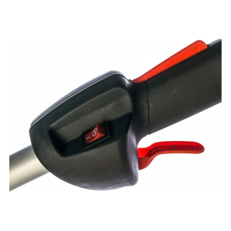 Режущая головка имеет систему Tap 'n Go: механизм автоматически подает корд, если стукнуть о землю. Все органы управления у триммера расположены в верхней части, к ним не надо тянуться, все очень эргономично. Дополнительная рукоять имеет D-образную форму, это обеспечивает крепкий хват и уменьшает нагрузку на мышцы.