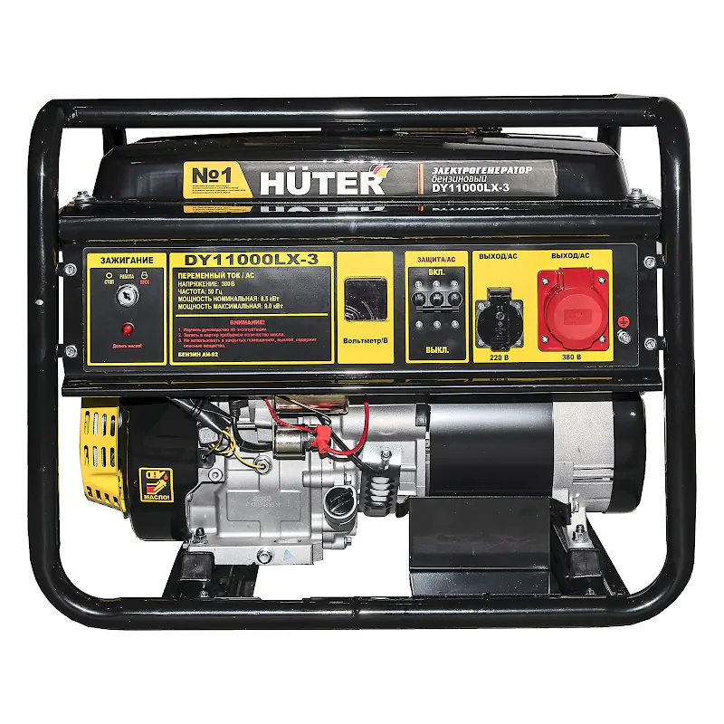 Бензиновый генератор HUTER DY11000LX-3 с номинальной мощностью 8,5 кВт обеспечивает питанием потребителей однофазного и трехфазного тока при отключении энергии или там, где отсутствует центральное электроснабжение. Портативная электростанция четырехтактным бензиновым двигателем мощностью 19 л.с. пригодится в частном доме, на производстве или строительной площадке.