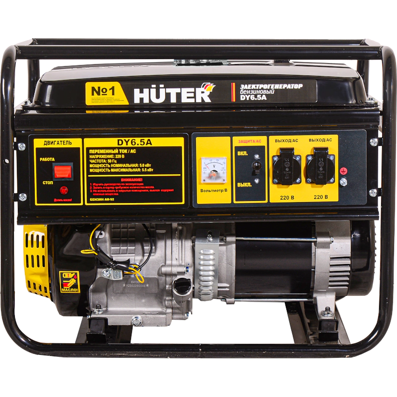 Электрогенератор Huter DY6.5A -электрическая машина, предназначенная для автономного электроснабжения. В качестве первичного двигателя используется четырёхтактный карбюраторный двигатель, топливом для которого является неэтилированный бензин.