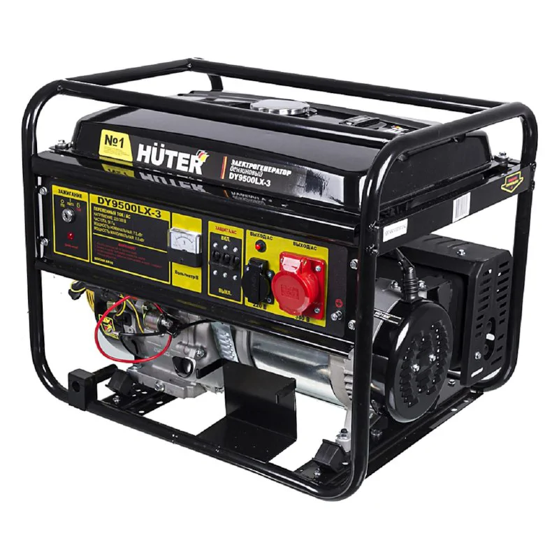 Трехфазный электрогенератор Huter DY9500LX-3 с двигателем внутреннего сгорания предназначен для автономного электроснабжения бытовой техники, осветительных приборов, электроинструмента и т.д. Генератор вырабатывает переменный ток напряжением 220 Вольт и 380 Вольт.