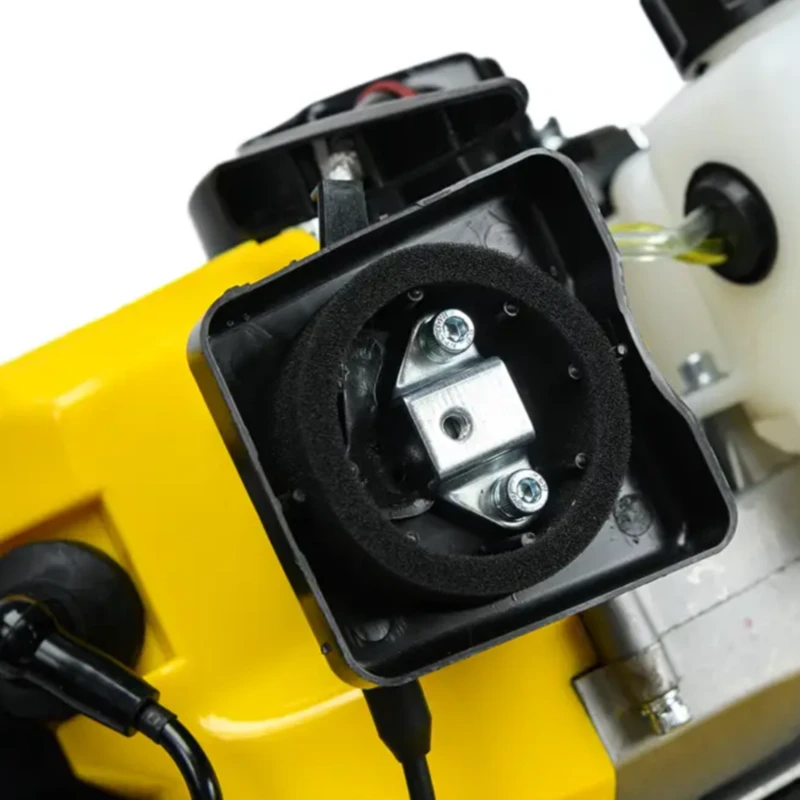 Мотокультиватор оснащён 2-х тактным одноцилиндровым бензиновым двигателем внутреннего сгорания мощностью 2.8 л.с. с ручным пуском и системой воздушного охлаждения. Инструмент лёгкий и манёвренный. Ручки мотокультиватора складные, что значительно облегчает переноску инструмента и его хранение.