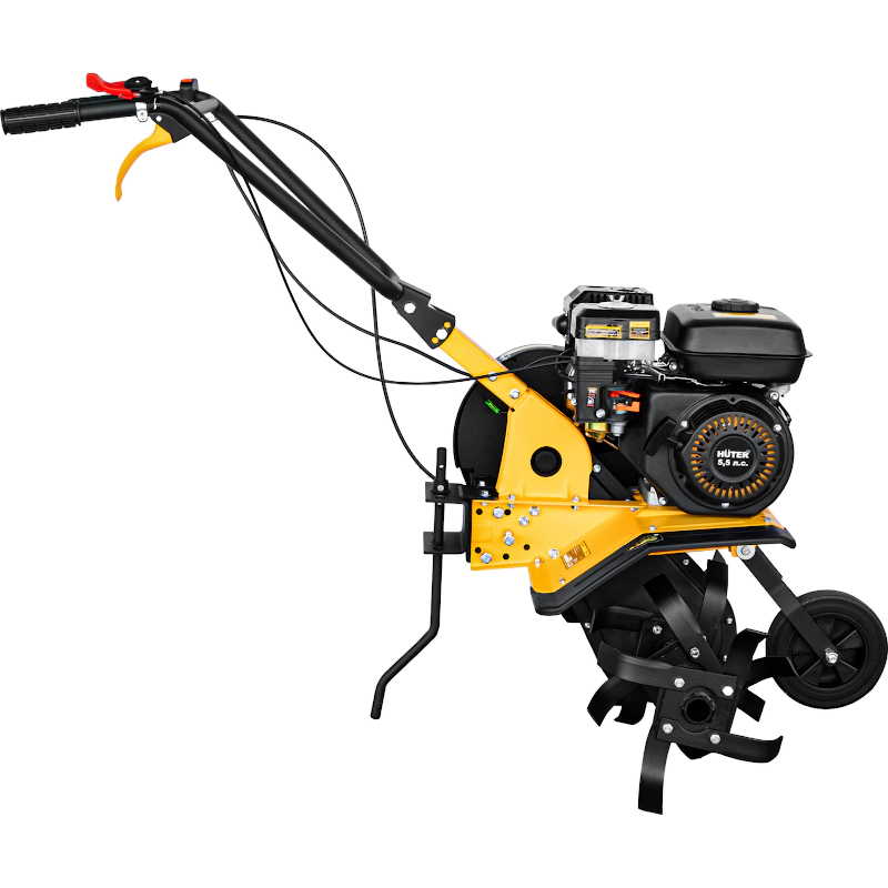 В передней части бензинового культиватора Huter GMC-5.5 расположено транспортировочное колесо. Это значительно облегчает перемещение агрегата до рабочей зоны.
