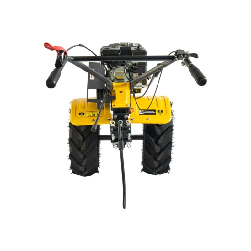 Для устойчивости и транспортировки мотоблок оборудован колесами с глубоким грунтозацепным рисунком.