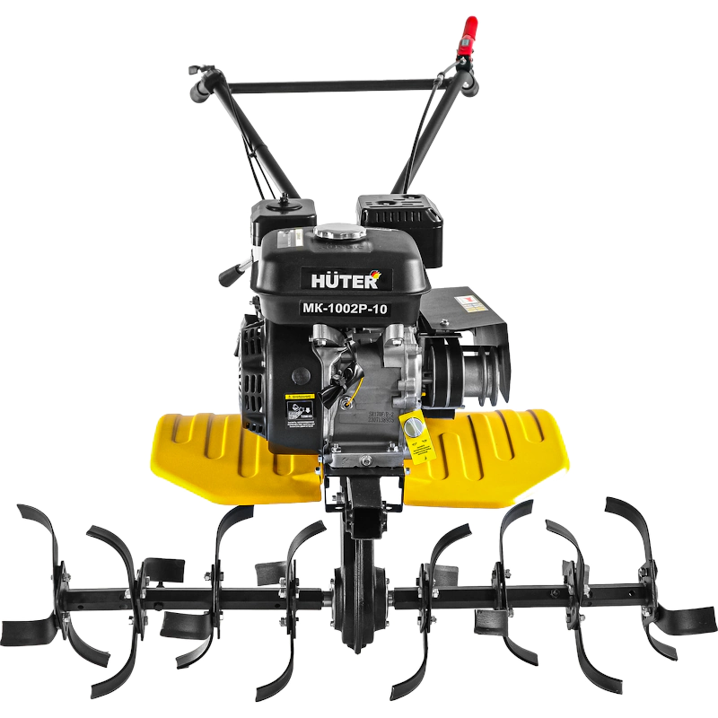 Мотоплуг HUTER МК-1002Р-10 оснащен мягкими прорезиненными рукоятками, которые обеспечивают удобное использование машины. Для быстрого доступа на держателях размещены рычаг регулировки оборотов двигателя и газа, а также кнопка зажигания. Благодаря сбалансированной конструкции мотоблока его легко перемещать и контролировать.
