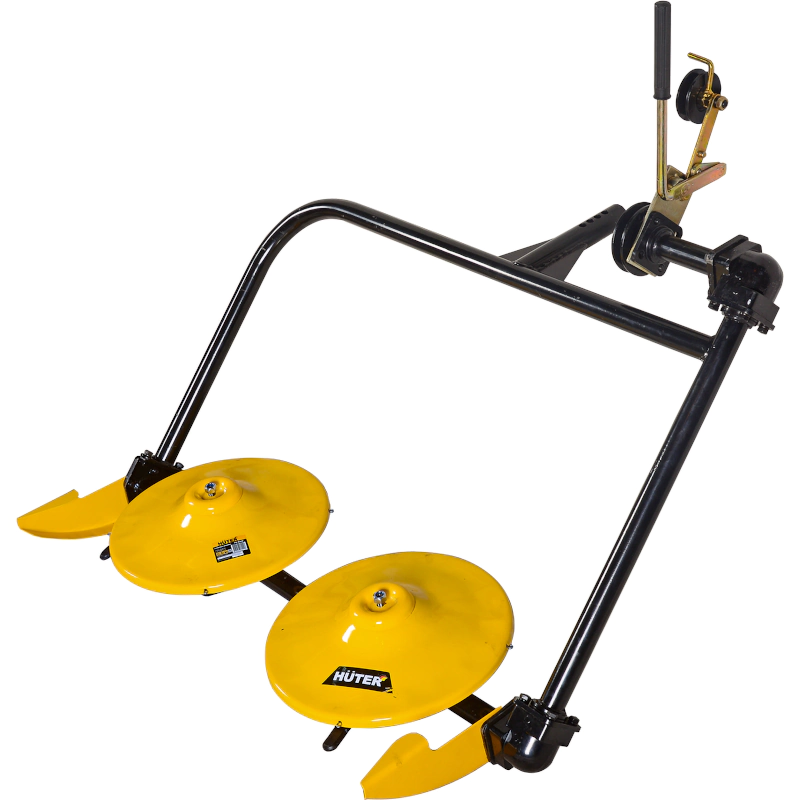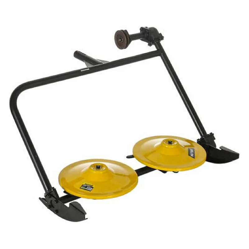 Косилка состоит из рамы, на которой зафиксированы два диска с острозаточенными ножами, сбоку рамы располагаются салазки, за счет которых можно отрегулировать высоту среза. Имеет небольшой вес, проста в установке, что обеспечивает комфортное использование.