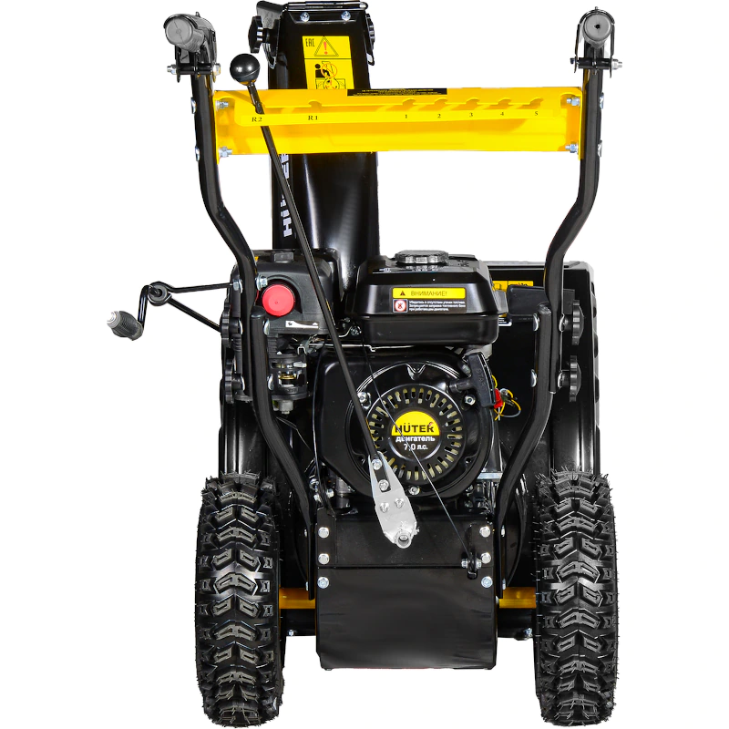 Зимний двигатель легко заводится на морозе при помощи ручного стартера благодаря насосу предварительной подкачки топлива в карбюратор. Наличие пяти передних передач и двух скоростей заднего хода обеспечивает высокую маневренность бензинового снегоуборщика Huter. В зависимости от плотности и высоты снежного покрова на участке можно выбирать необходимый темп передвижения.