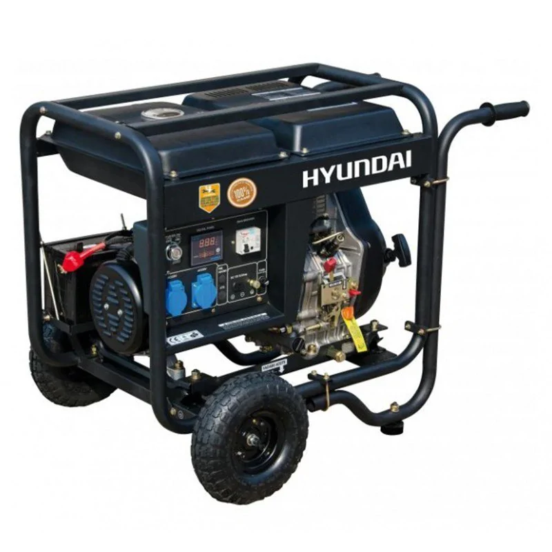 Дизельный генератор Hyundai DHY 6000LE-3 применяется в качестве автономного источника питания на участках, не подключенных к основной электросети. Две розетки по 16 А позволяют подсоединять однофазные и трехфазные потребители. Мотор заводится 2 способами: с помощью электрозапуска или ручного стартера.