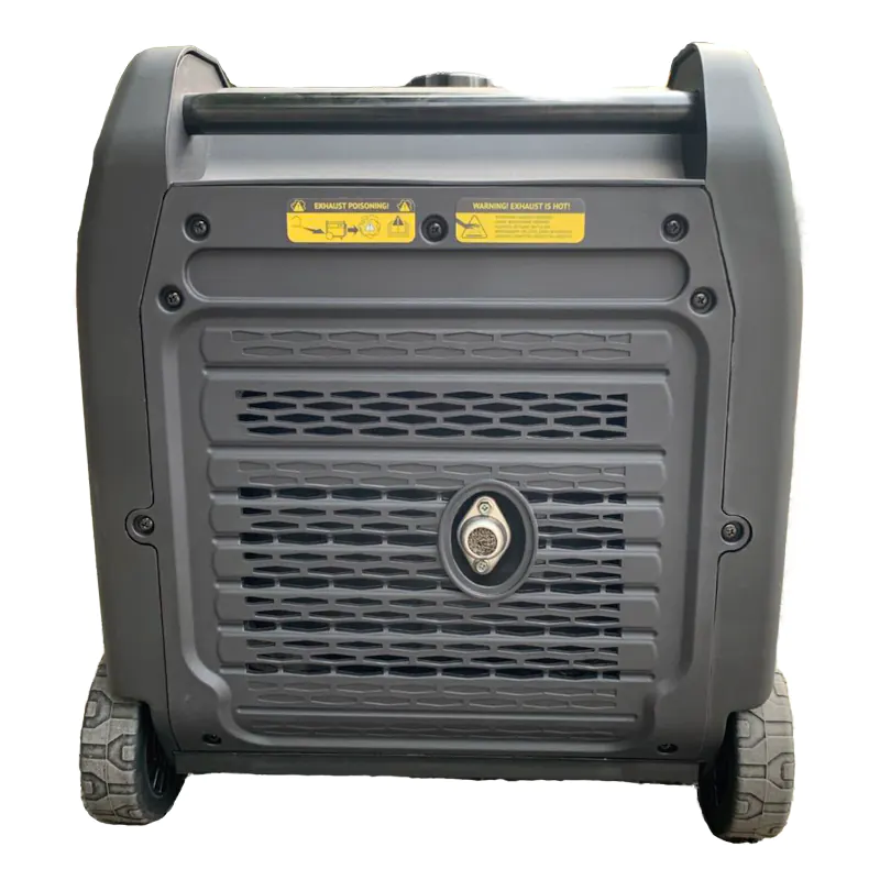 В верхней части корпуса бензиновой инверторной электростанции расположена телескопическая ручка. Она упрощает перемещение генератора по помещению. При хранении её можно сложить, что позволит модели занимать меньше пространства.