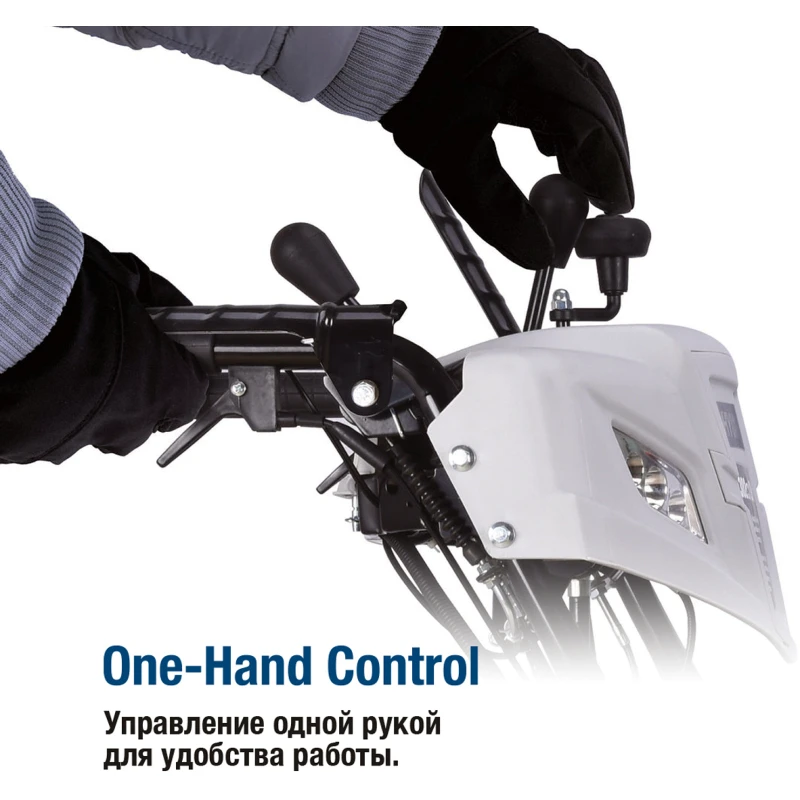 Самоходная машина имеет 6 скоростей движения вперед и 2 назад, что позволяет подобрать оптимальный темп работы для любого типа снега.