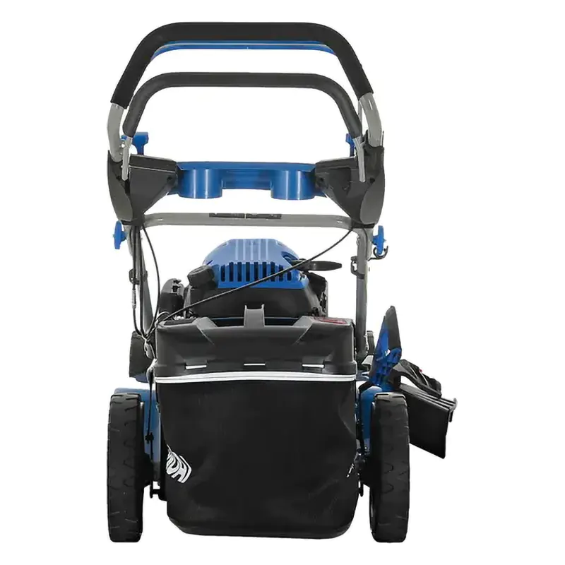 Бензиновая газонокосилка оснащена четырехтактным одноцилиндровым двигателем мощностью 5,6 л.с. объемом 196 см3. Для изменения высоты среза в диапазоне от 25 до 75 мм достаточно переставить ручку регулировки в одно из шести фиксированных положений. Комбинированный травосборник объемом 65 л имеет жесткую пластиковую крышку с ручкой и мягкое тканевое дно для простой очистки и компактного хранения.