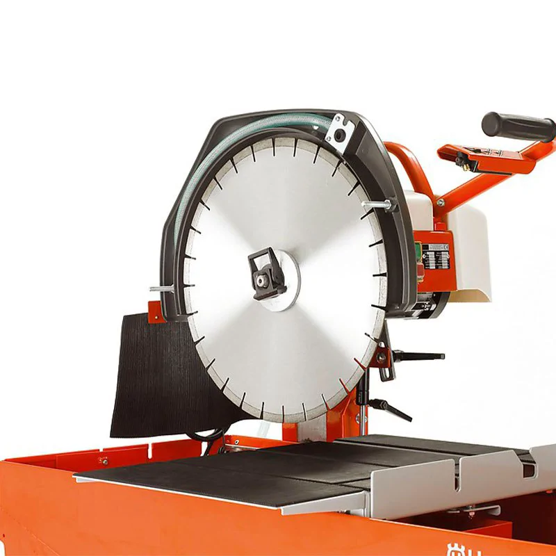 Камнерезная пила Husqvarna TS 400 F с водяным охлаждением предназначена для резки кирпича, бетона, камня, плит из керамики, гранита, мрамора. Вода поступает из 40-литровой емкости на диск через встроенный насос. Станок имеет механизм наклона режущей оснастки для пиления под углом до 45º. Камнерез оснащен диском диаметром 400 мм с посадочным отверстием под шпиндель 25,4 мм. Пила работает от асинхронного двигателя мощностью 2200 Вт и получает питание от сети с напряжением 230 В.