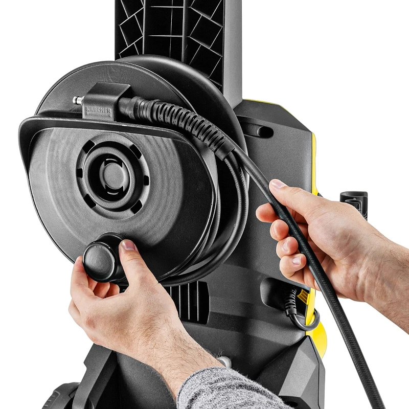 Барабан обеспечивает удобство хранения шланга высокого давления. Все другие принадлежности, входящие в комплект поставки, также удобно размещаются непосредственно на корпусе аппарата.