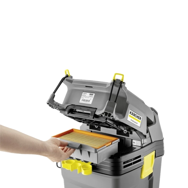 NT 30/1 Ap L - это компактный высококачественный пылесос для влажной и сухой уборки среднего класса с полуавтоматической системой очистки фильтра. Пылесос подходит для различных областей применения, таких как очистка салона автомобиля, сбор крупного мусора и жидкостей или очистка рабочего оборудования. Он обладает превосходной силой всасывания и эффективной системой очистки фильтра, вместе они позволяют удалять даже среднее количество мелкой пыли без использования фильтр-мешка.