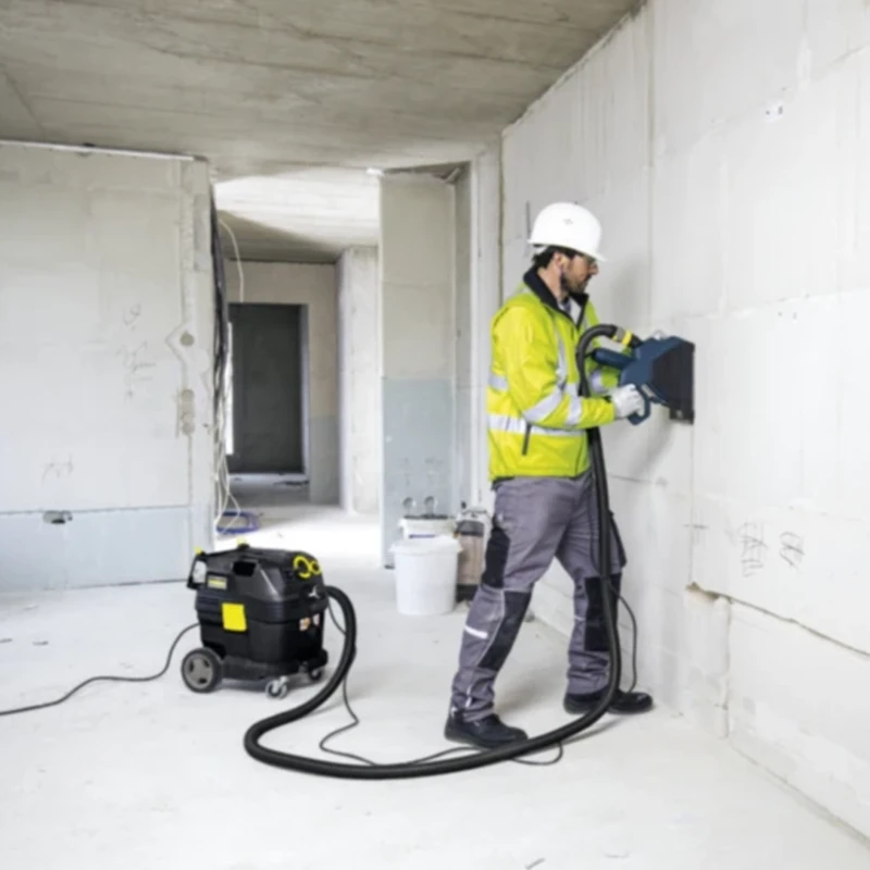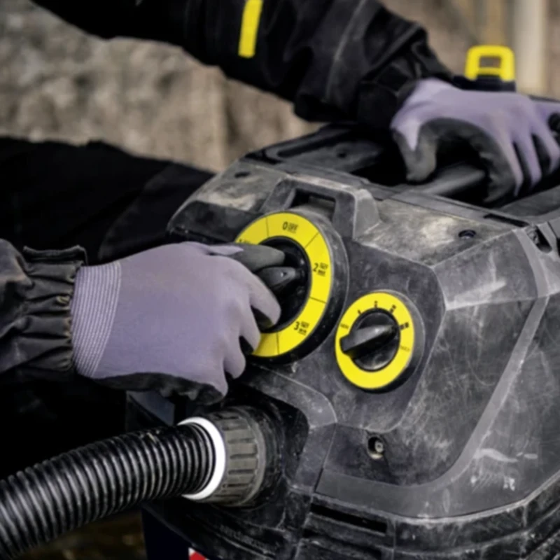 Встроенная розетка и специальный адаптер для подключения электроинструмента позволяют убирать пыль, стружки или опилки во время ремонтно-строительных работ. Пылесос Karcher NT 30/1 Tact Te L Anniversary Edition включается автоматически с задержкой в полсекунды после запуска электроинструмента.