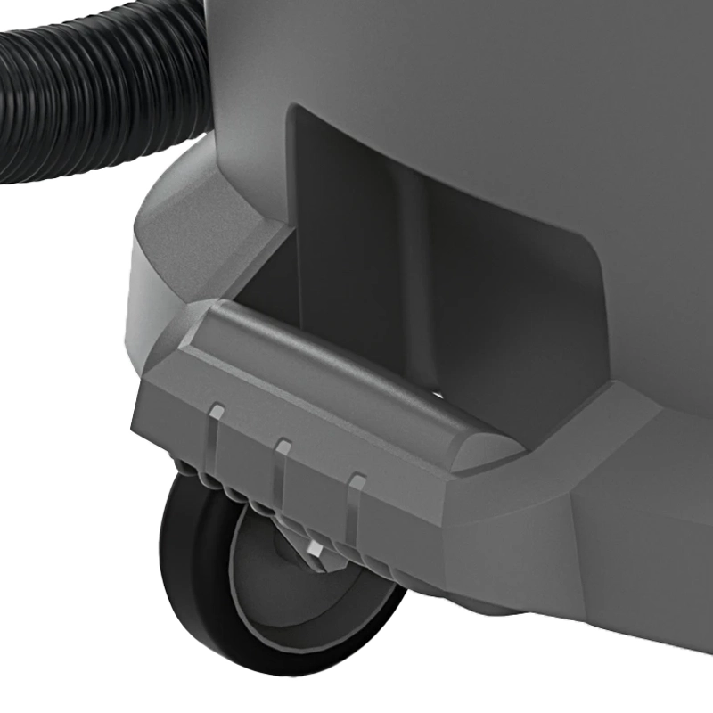 Прочный пластиковый корпус из которого сделан пылесос, выдерживает неаккуратное обращение. Во избежание повреждений на корпусе предусмотрены отбойники, поглощающие удары об стены. Большие металлические колеса обеспечивают удобное перемещение по любой поверхности.